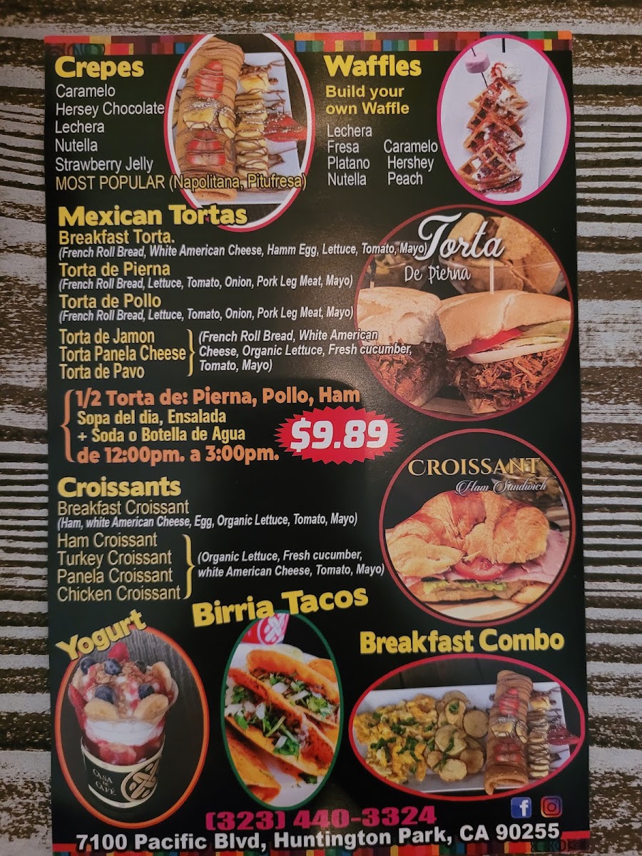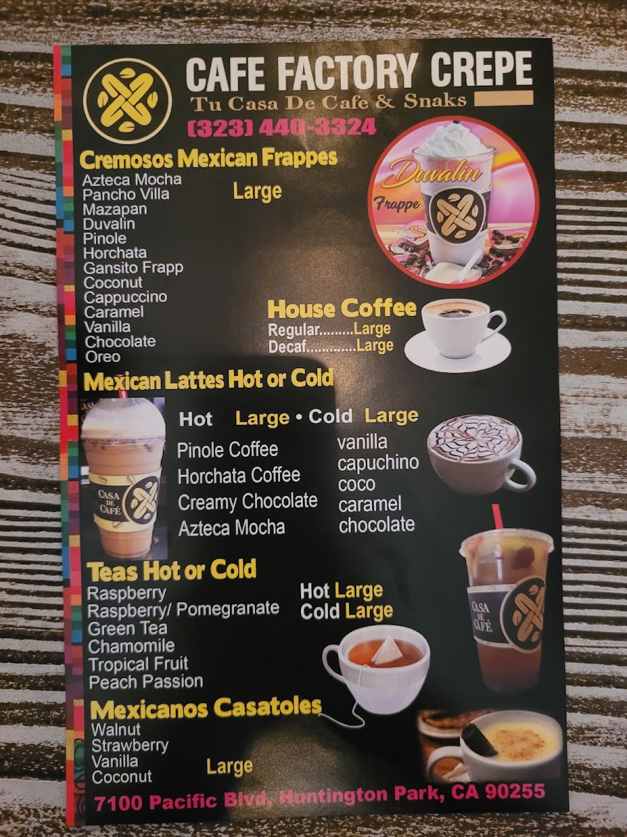 Welcome to Cafe Factory Crepe, a charming cafe nestled on Pacific Blvd in Huntington Park, where culinary creativity meets comfort. The menu is a delightful fusion of flavors, prominently featuring their exquisite crepes adorned with fresh strawberries and bananas, which have earned rave reviews from satisfied customers. Breakfast options like the delightful egg scrambles and birria tacos are both hearty and flavorful, ensuring a satisfying start to your day.